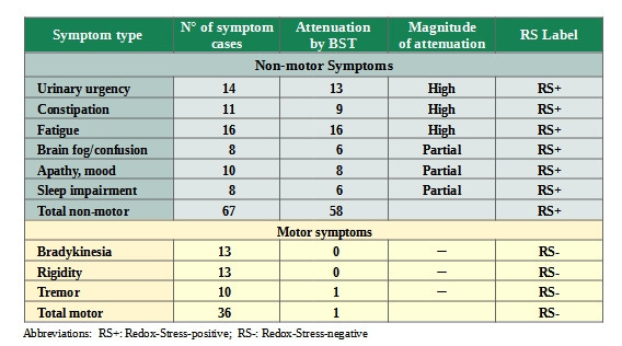 The Redox Stress Test: People with Parkinson’s reported a rapid decline of total non-motor symptoms whereas motor symptoms were strictly unchanged over the 6-week duration of the test.
