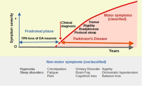 - Non-motor symptoms of Parkinson’s are chronologically aligned to this exceptional loss of DA neurons.